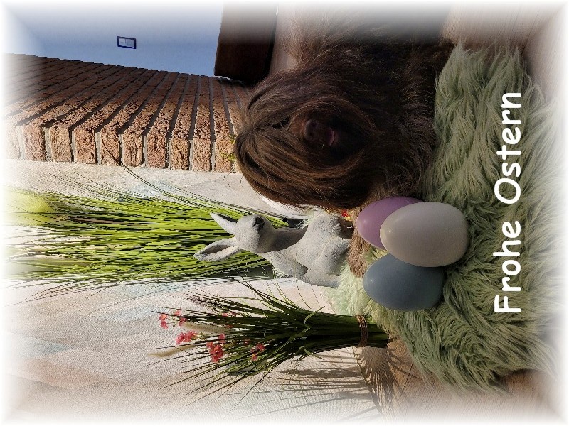 Wir wünschen allen Besuchern unserer Homepage schöne Ostertage. Pauline bewacht das Osternest. |