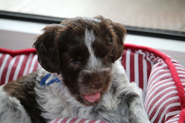 Die 7. Woche neigt sich schon dem Ende zu: 'Welpen B-Wurf - 7.Woche' Die kleine 'Be my Paula the Cloud Jumper' sagt allen 'Hallo'. |