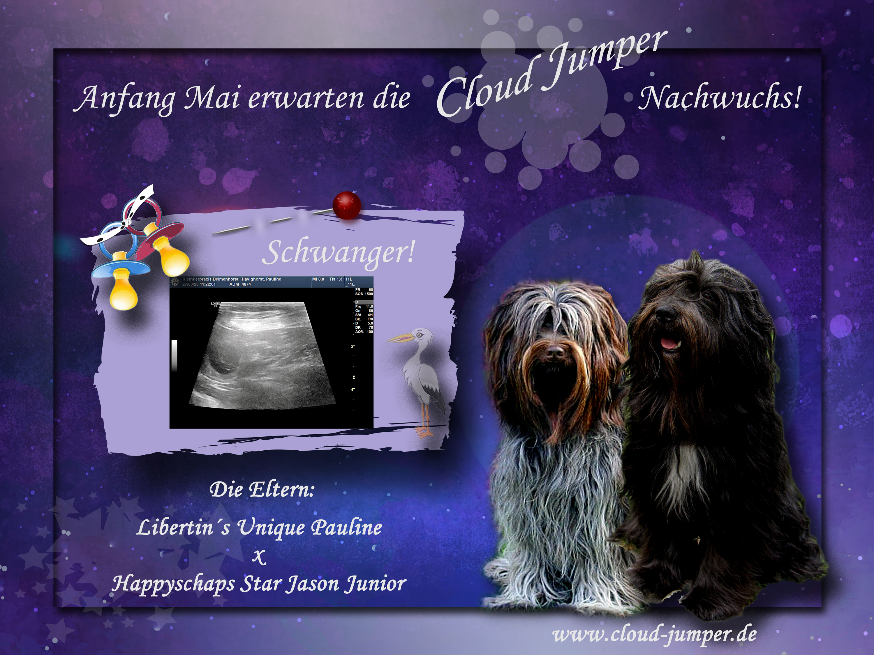 Wir waren beim Ultrschall und da sind Sie nun: Die ersten Bilder der kleinen Cloud Jumper Pauline bekommt Welpen! Wir freuen uns ganz dolle!