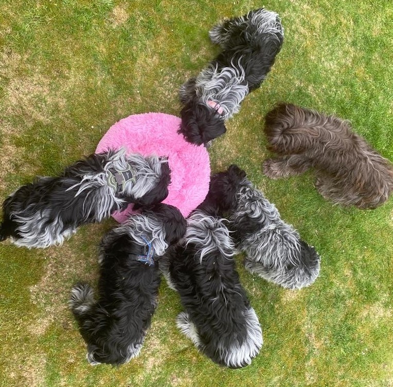 HAPPY BIRTHDAY den Fünfen aus unserem A-Wurf zum 1. GEBURTSTAGDas Bild stammt vom 30.04.2022: Welpentreffen in Delmenhorst mit Mama Pauline |