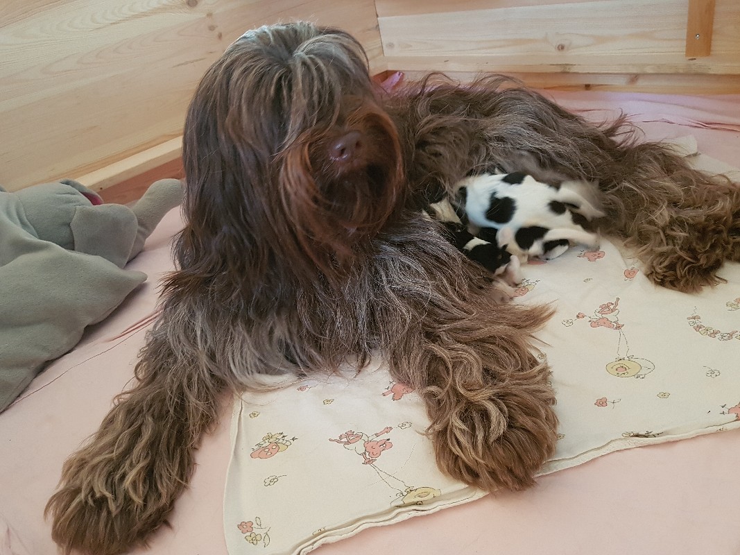 Hier nun ein erstes Foto von Mama Pauline und ihren Welpis:
