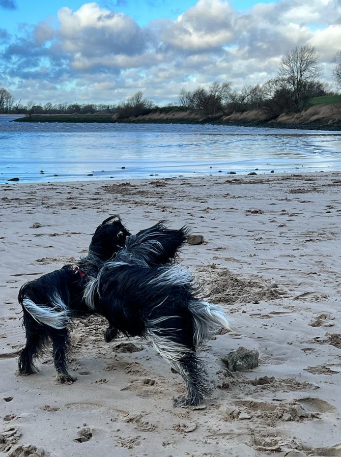 Leider wird es bei uns im März noch keine Schapendoes-Welpis geben. Trotz umfangreicher Vorbereitungen. Unserer Prinzessin Pauline war der von uns auserwählte Prinz Junior als Vater Ihrer Babys wohl nicht recht. Spielen war super, aber mehr wurde von Pauline nicht erlaubt. Da halfen auch keine mehreren Besuche. Die beiden "Königskinder" waren wohl ein wenig zu schüchtern. Wir geben aber nicht auf und werden es bei Ihrer nächsten Läufigkeit erneut probieren. Vielleicht sollten wir dann Pauline selbst Ihren Prinz auswählen lassen. |
